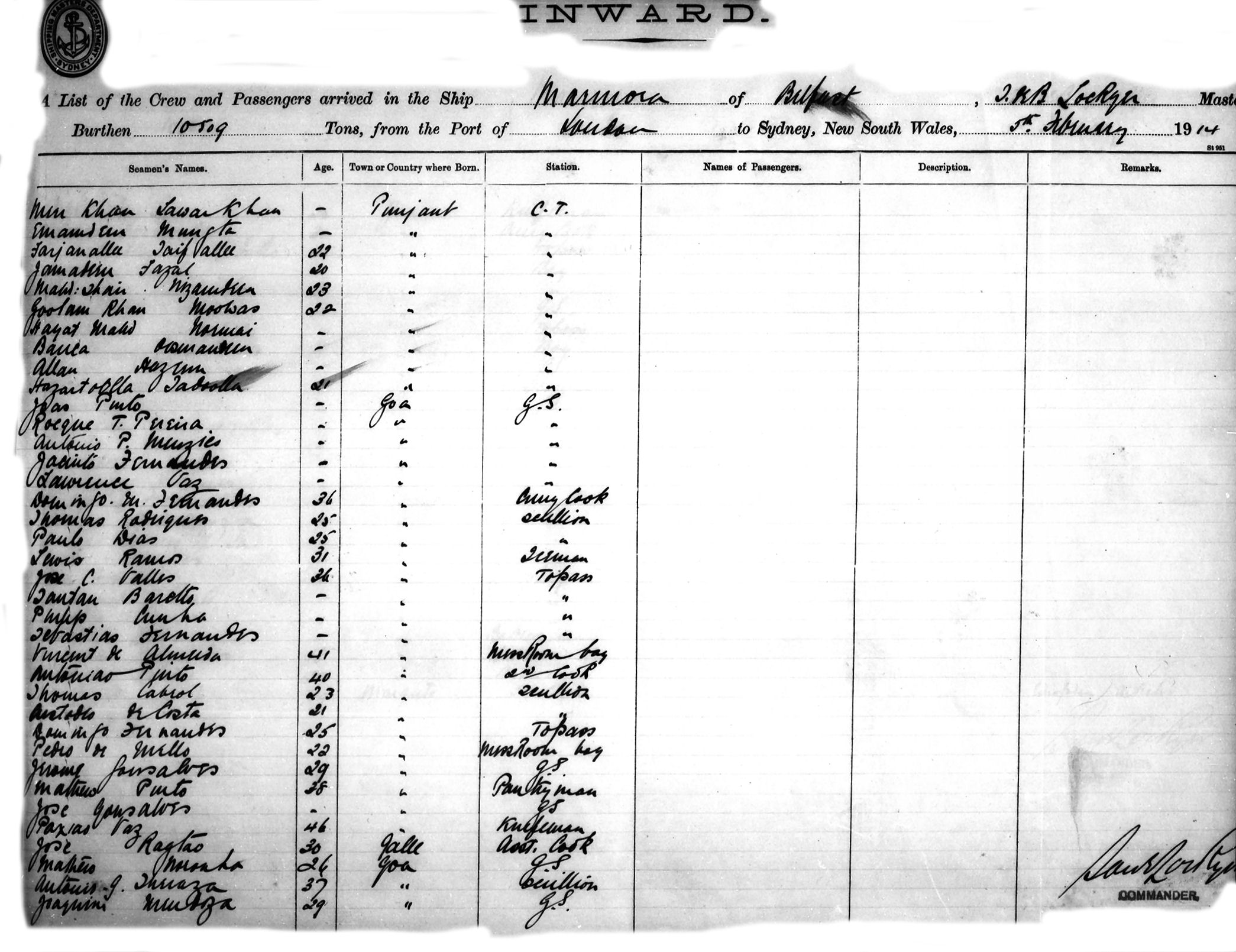 Source: State Records Authority of New South Wales: Shipping Master's Office; Passengers Arriving 1855 - 1922; NRS13278, [X384] reel 2077. Transcribed by Lyn & Maurie.