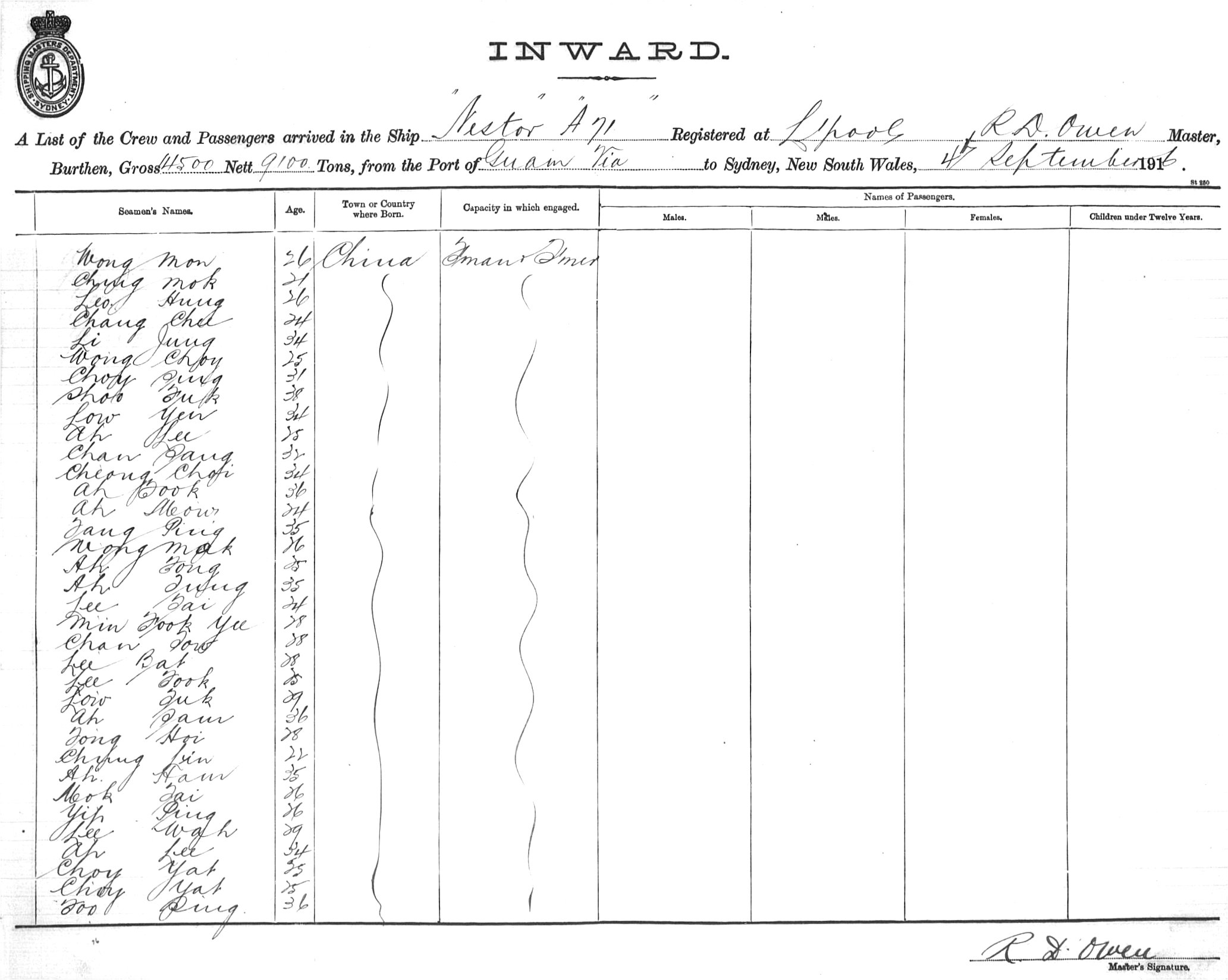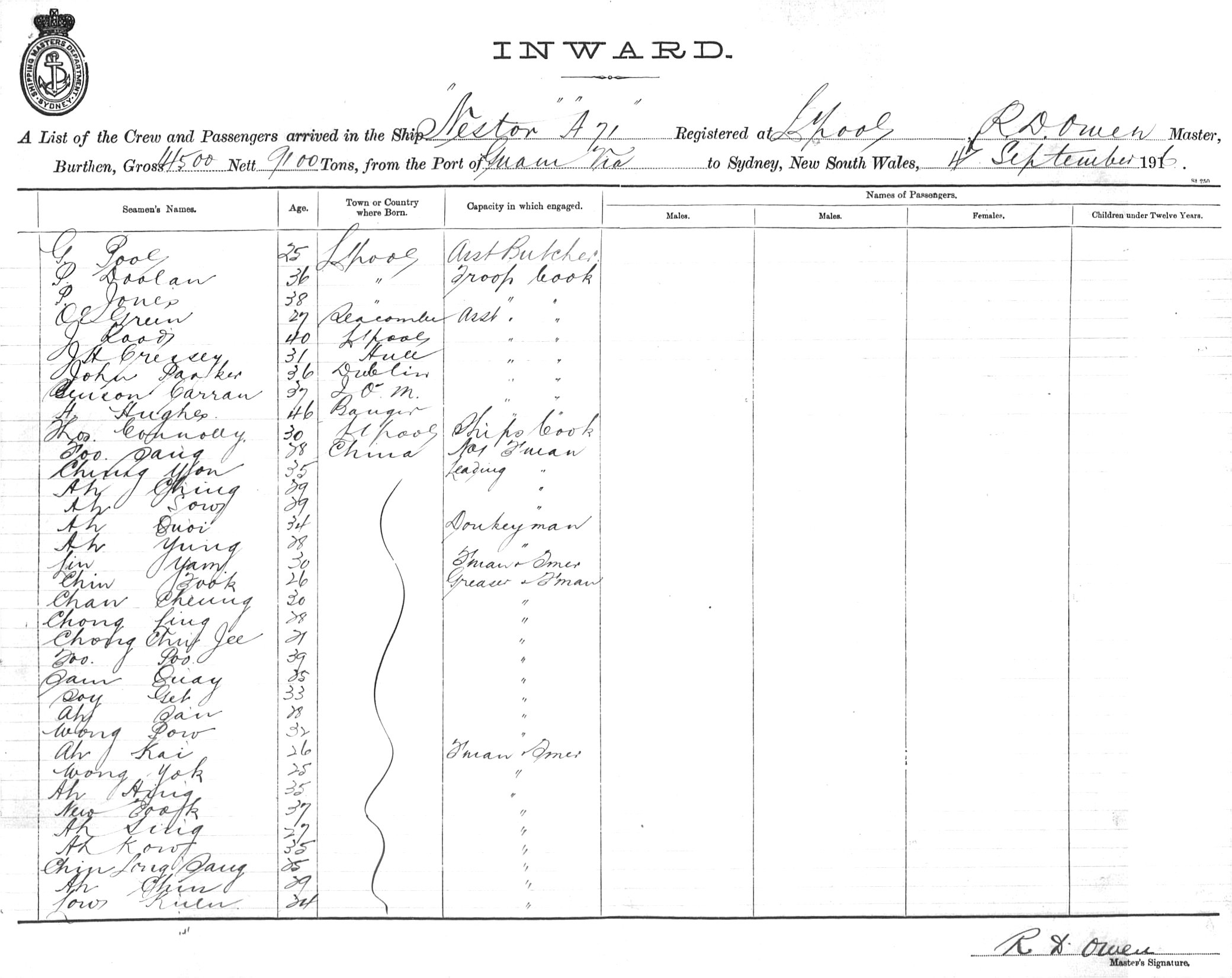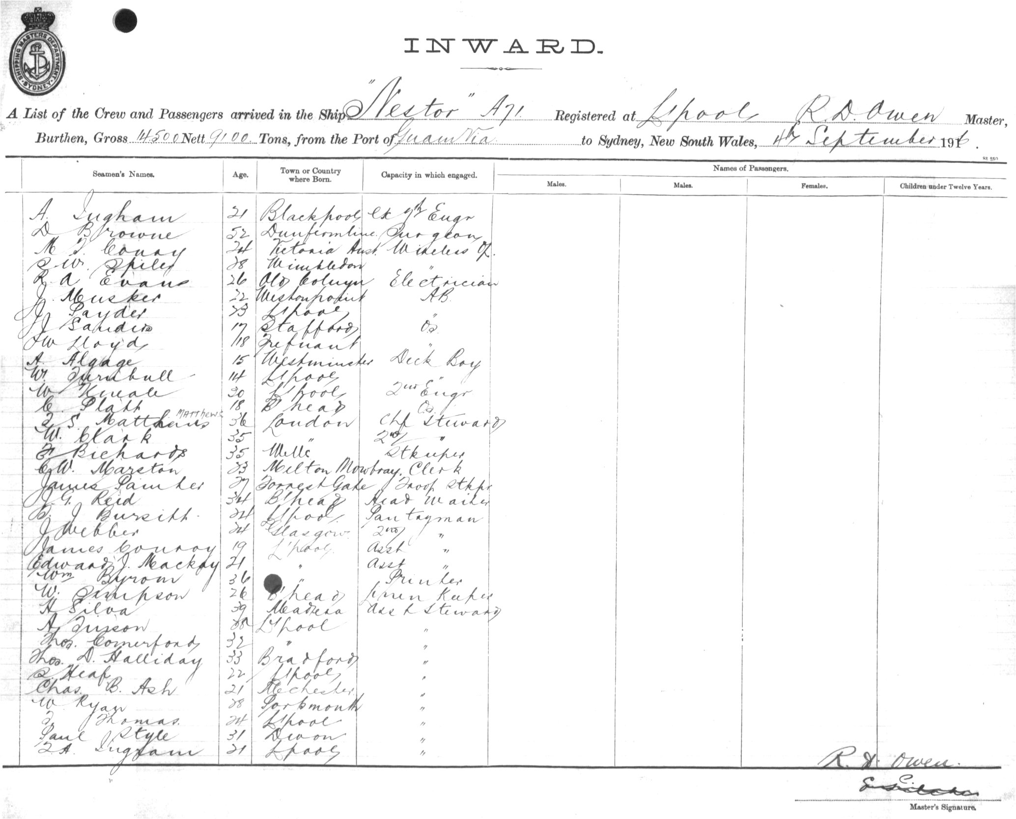 Mariners and ships in Australian Waters | NESTOROF LIVERPOOL, R. D. OWEN, MASTER, BURTHEN 14,500/9100 TONS FROM THE PORT OF GUAM TO SYDNEY, NEW SOUTH WALES, 4TH SEPTEMBER 1916 |