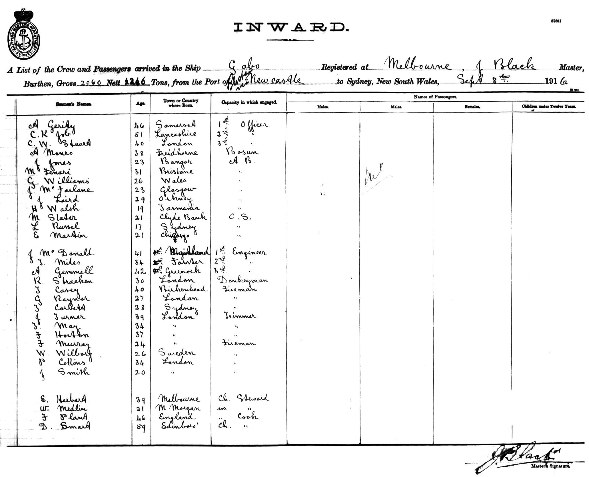 GABOOF MELBOURNE, J. BLACK, MASTER, BURTHEN 2060/1246 TONS FROM THE PORT OF BRISBANE via NEWCASTLE TO SYDNEY, NEW SOUTH WALES, 8TH SEPTEMBER 1916 |