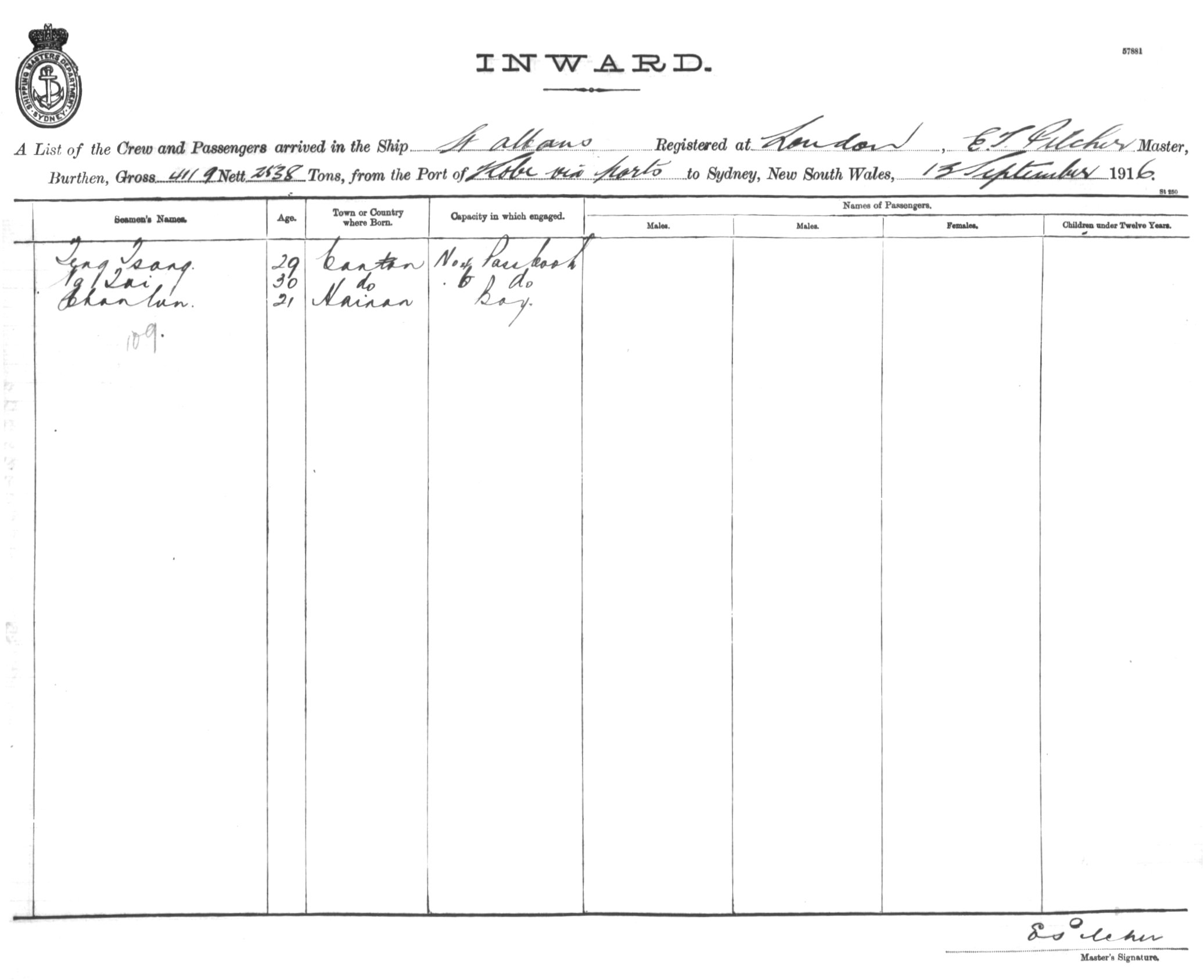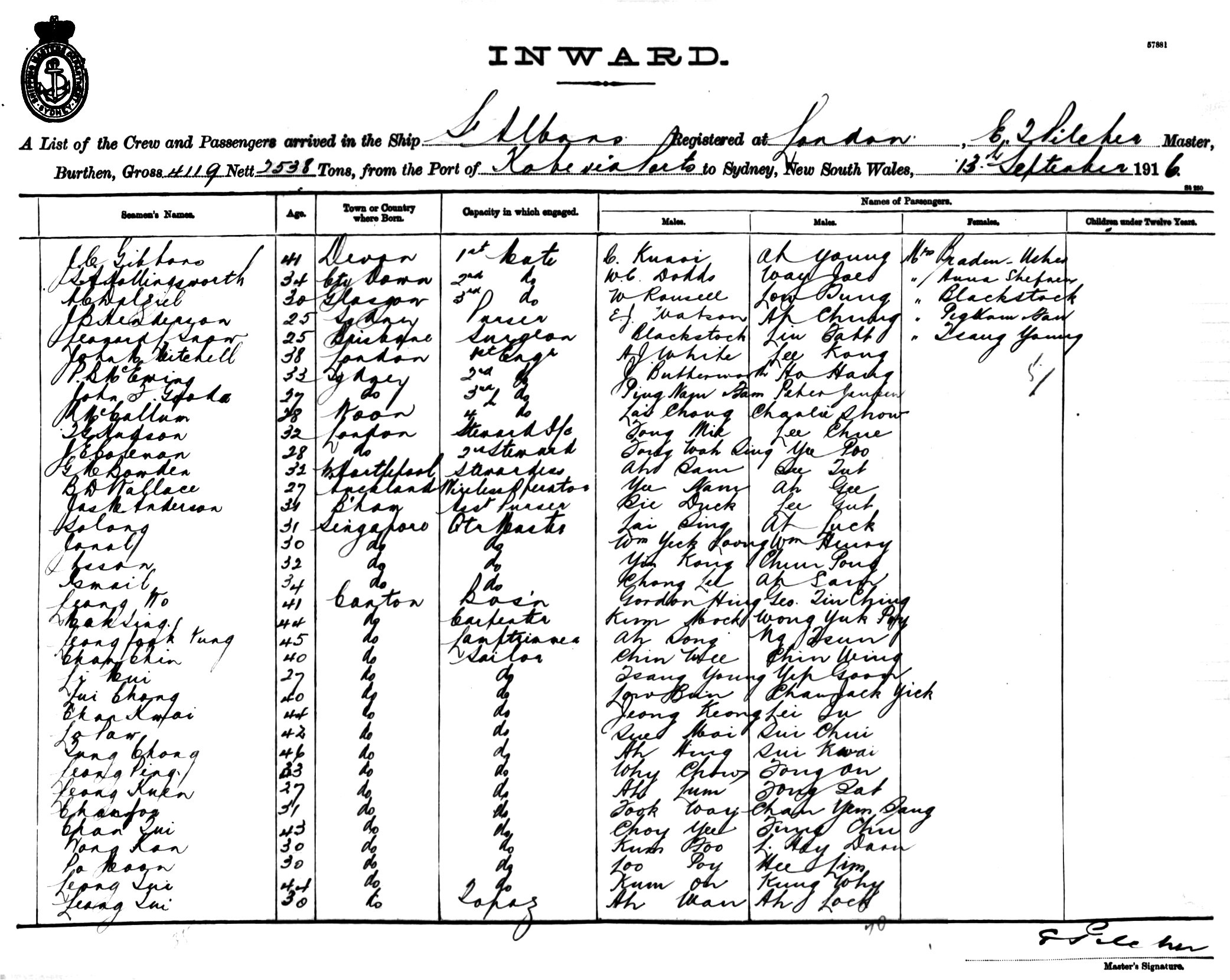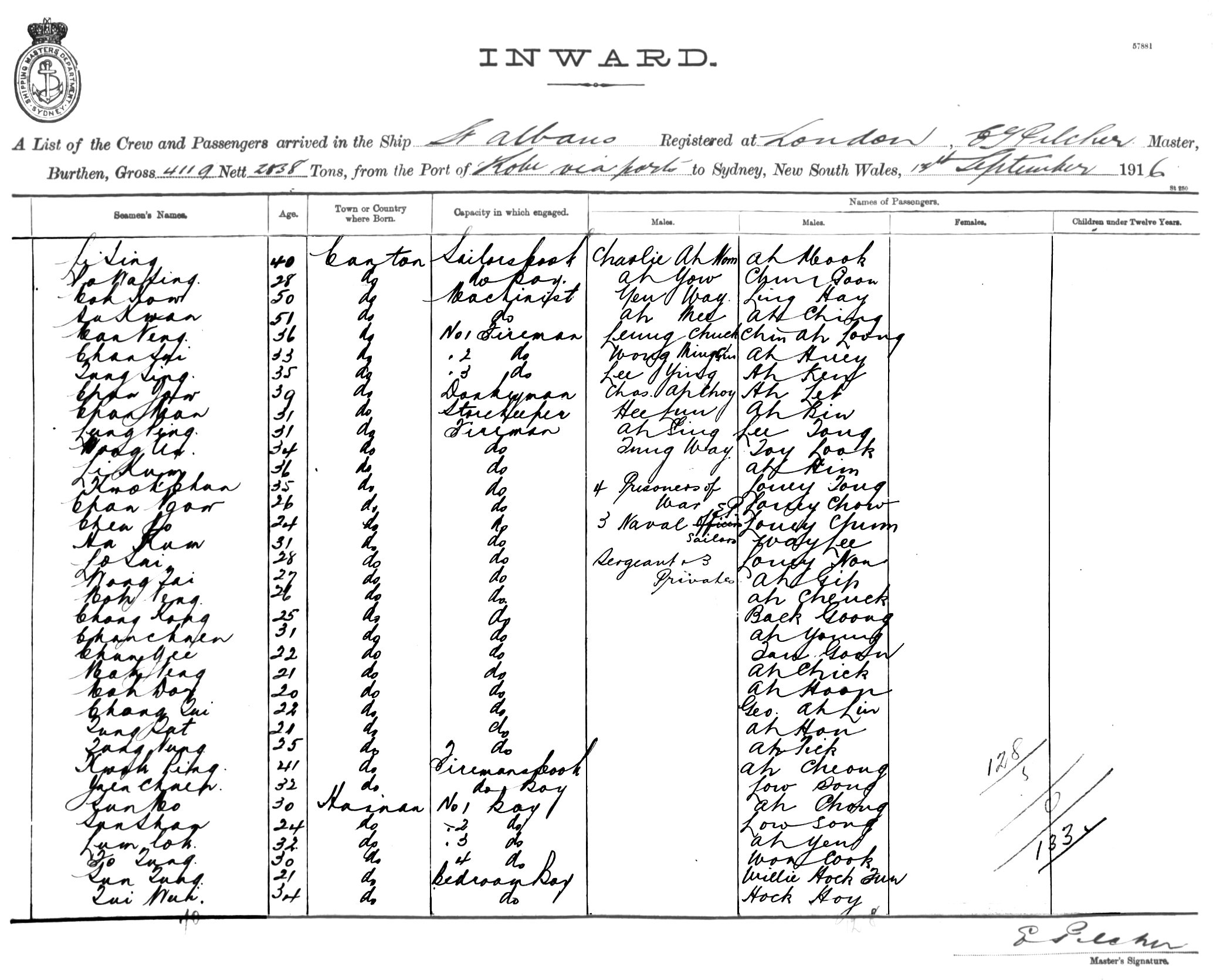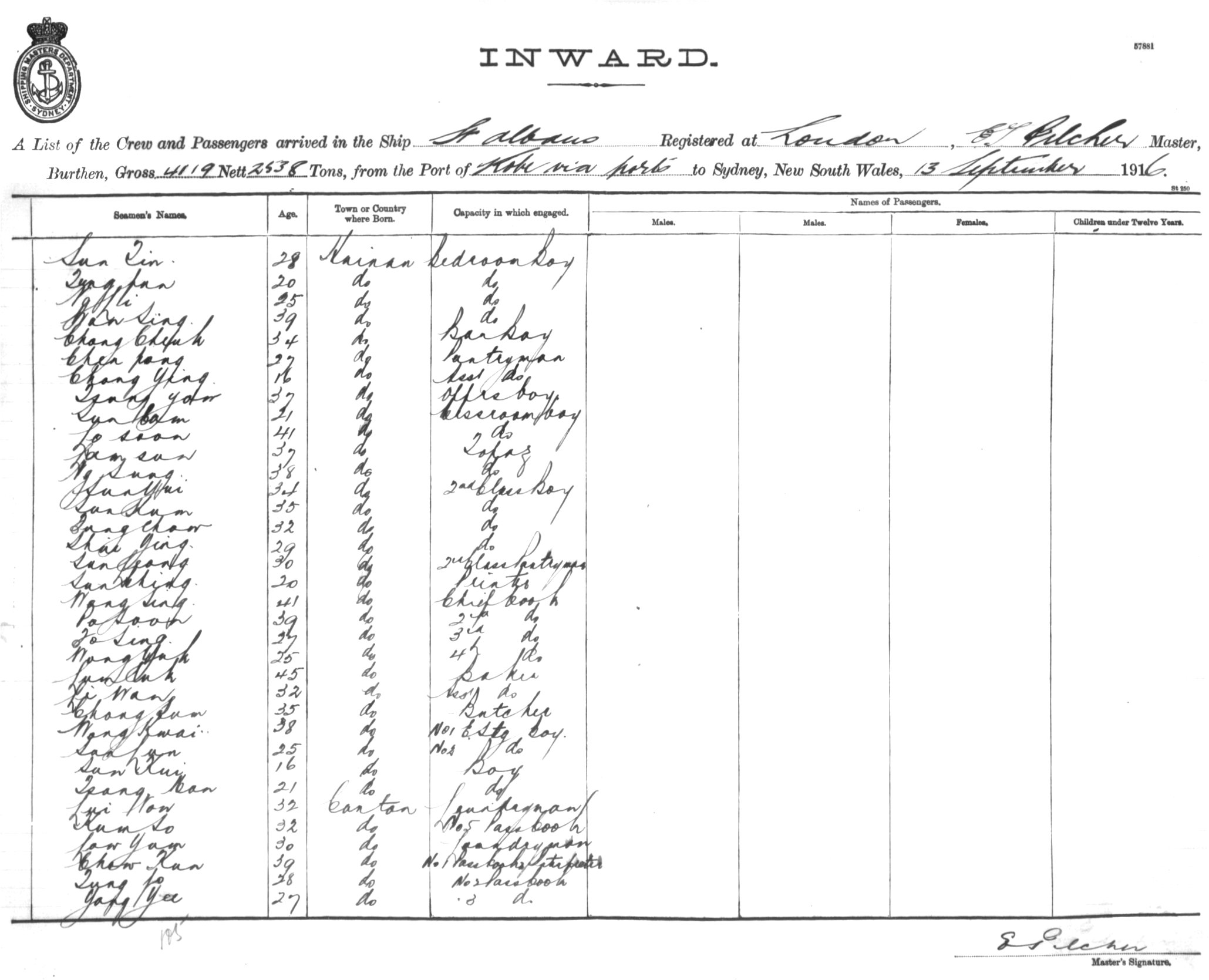 SAINT ALBANSOF LONDON, E. T. PILCHER, MASTER, BURTHEN 4119/2538 TONS FROM THE PORT OF KOBE VIA PORTS TO SYDNEY, NEW SOUTH WALES, 13TH SEPTEMBER 1916 |