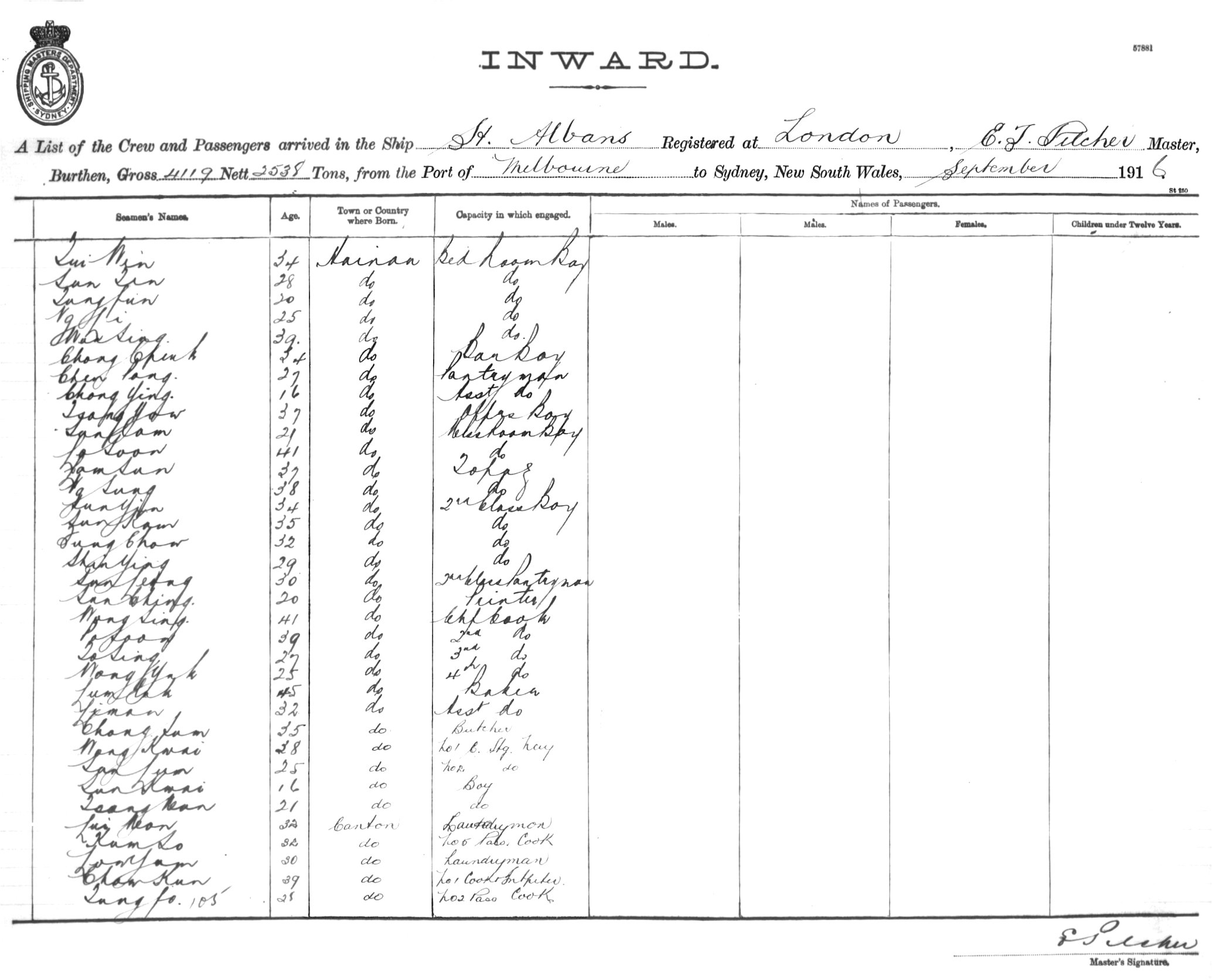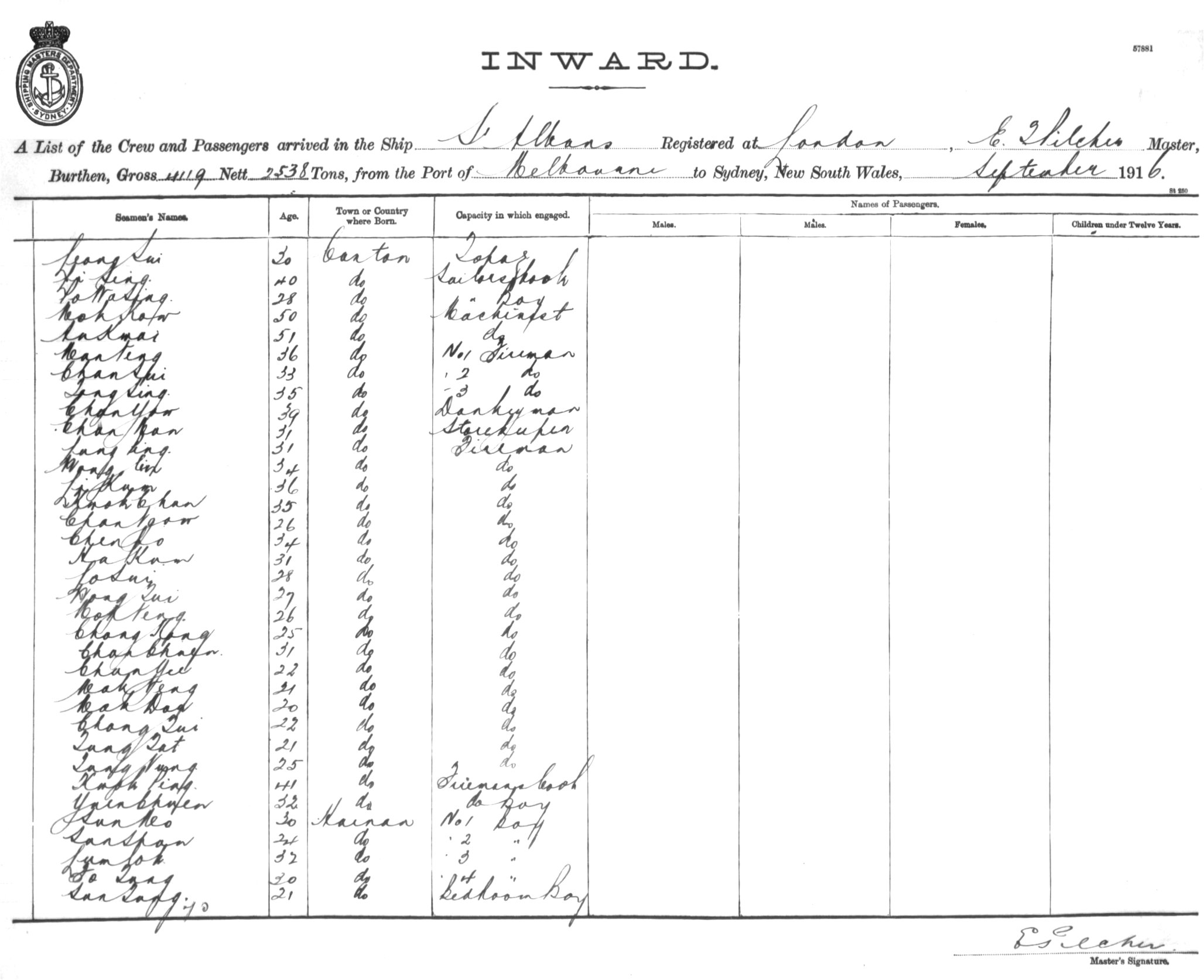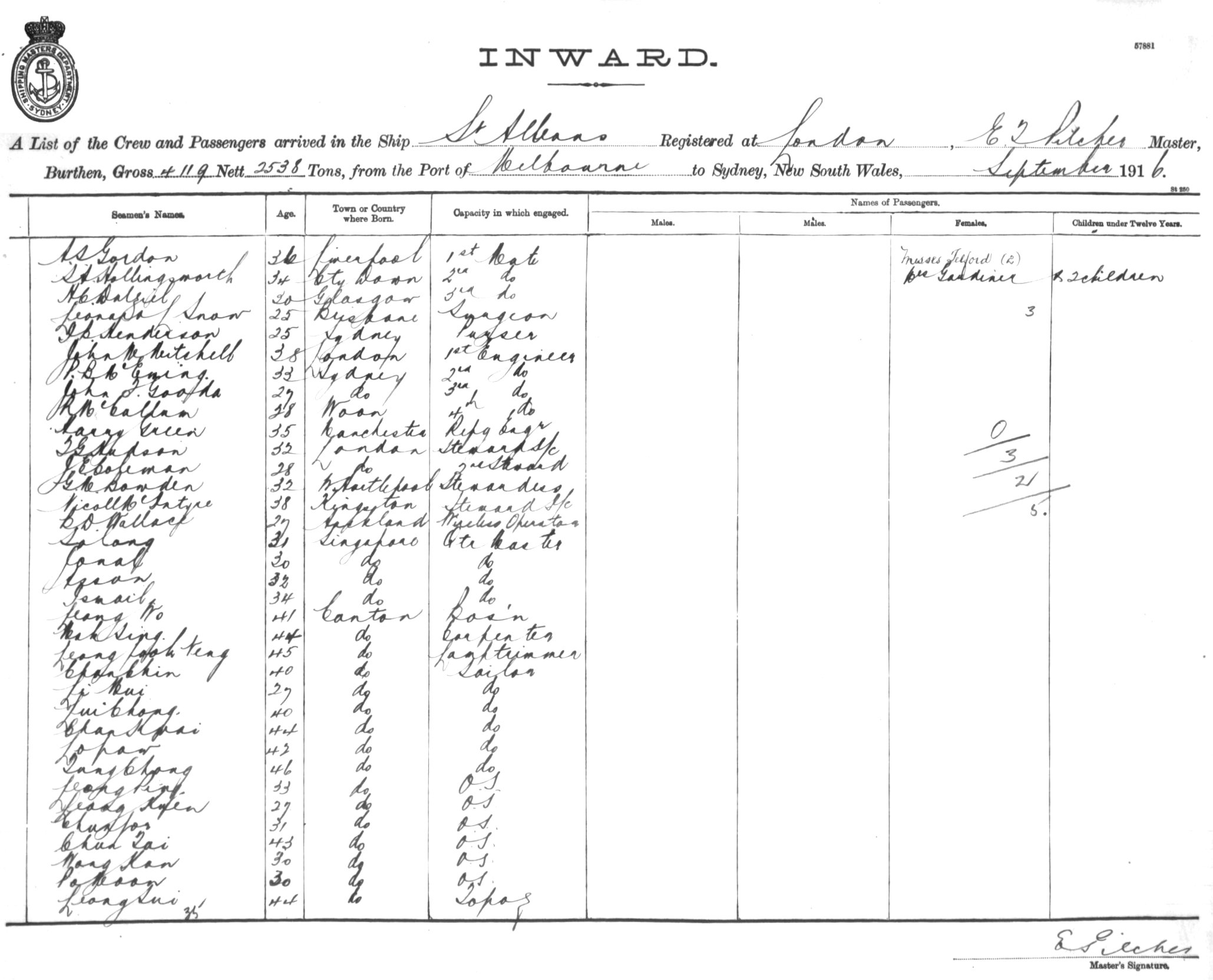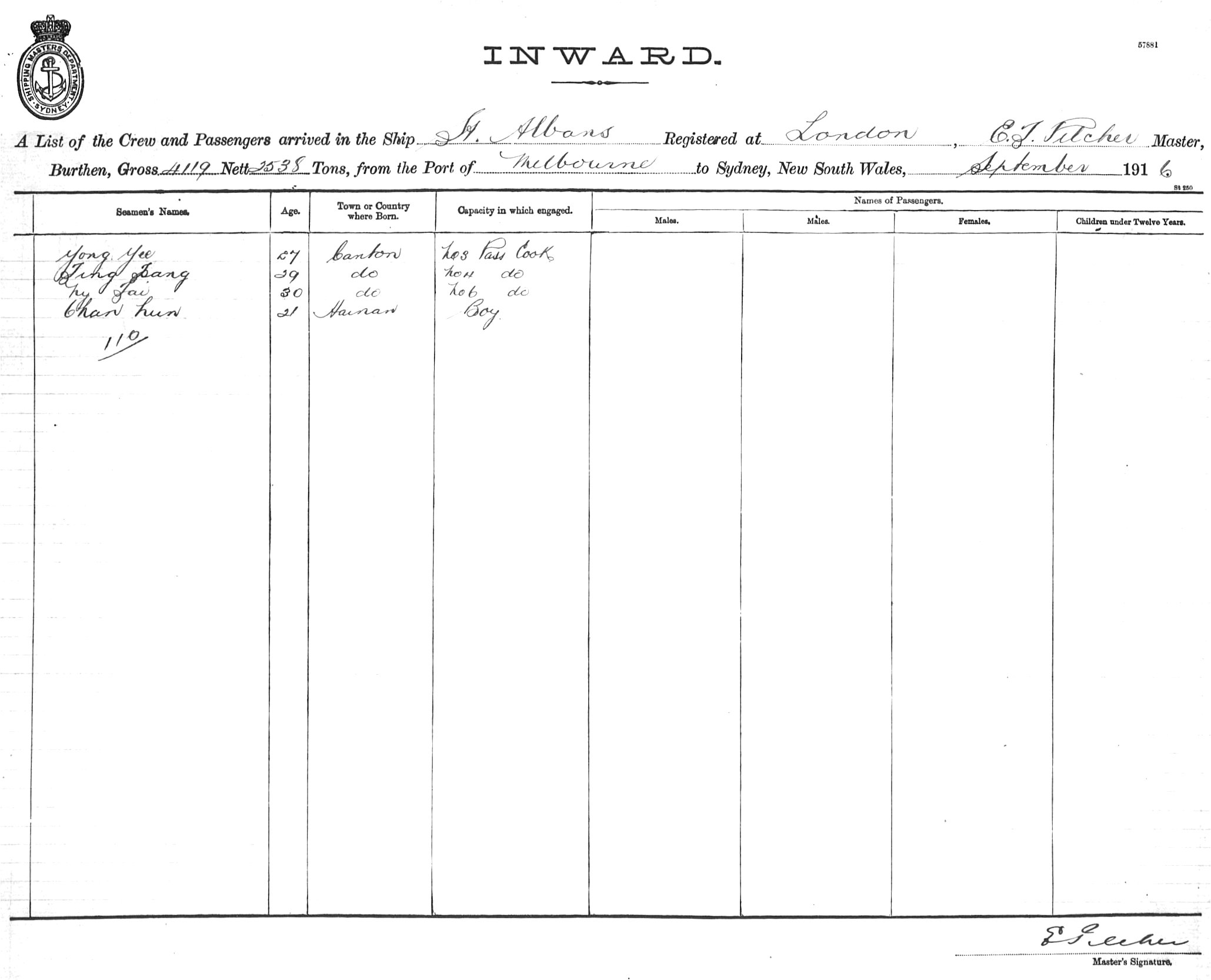 SAINT ALBANSOF LONDON, E.T. PITCHER, MASTER, BURTHEN 4119/2538 TONS FROM THE PORT OF MELBOURNE TO SYDNEY, NEW SOUTH WALES, 23RD SEPTEMBER 1916 |