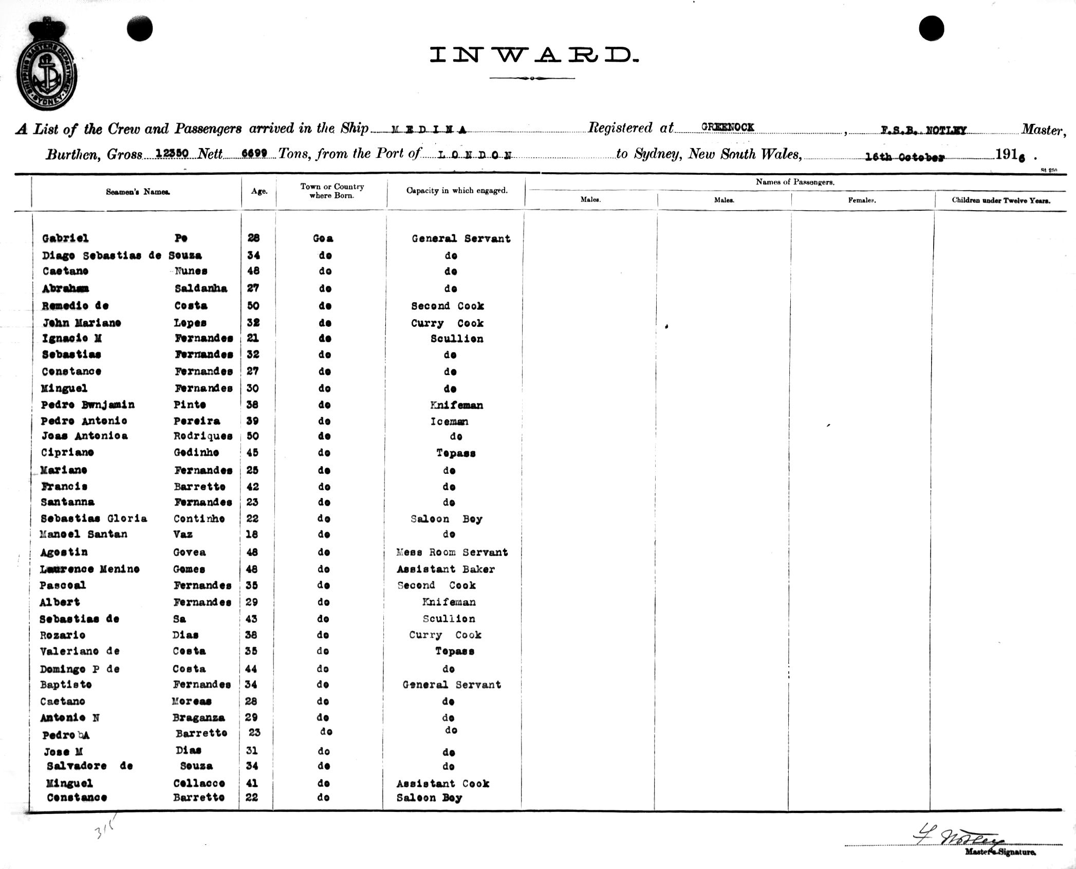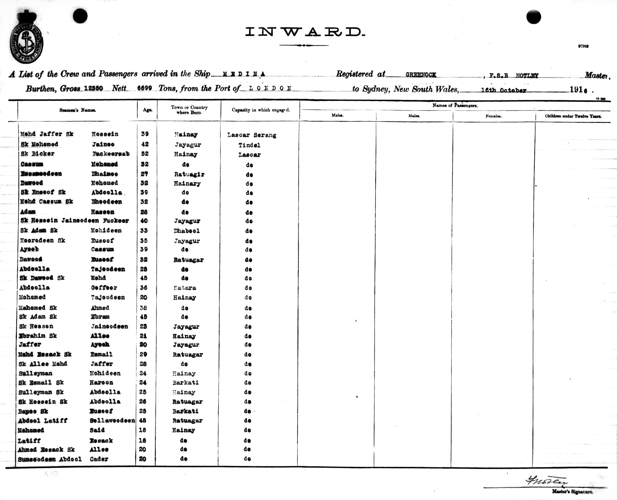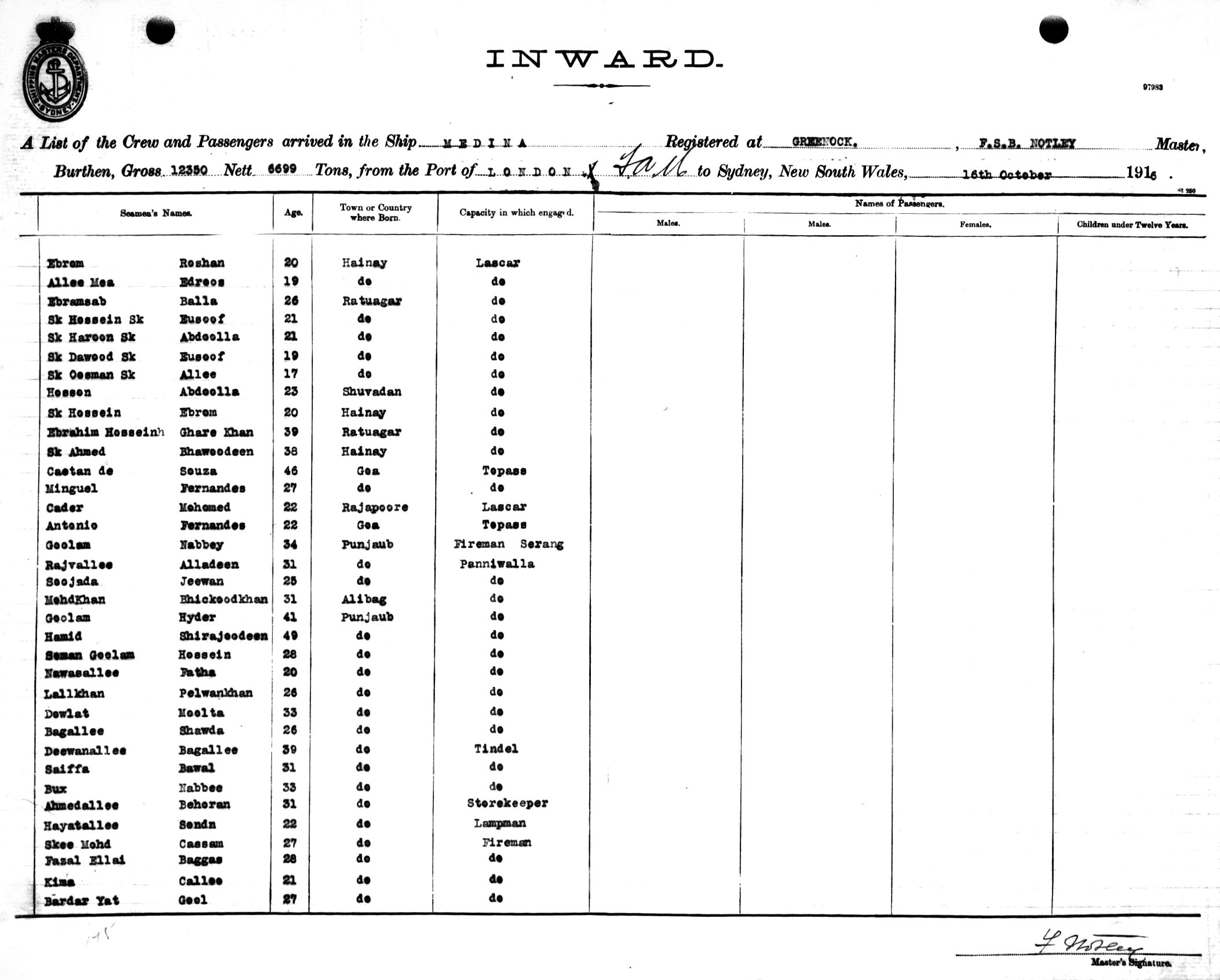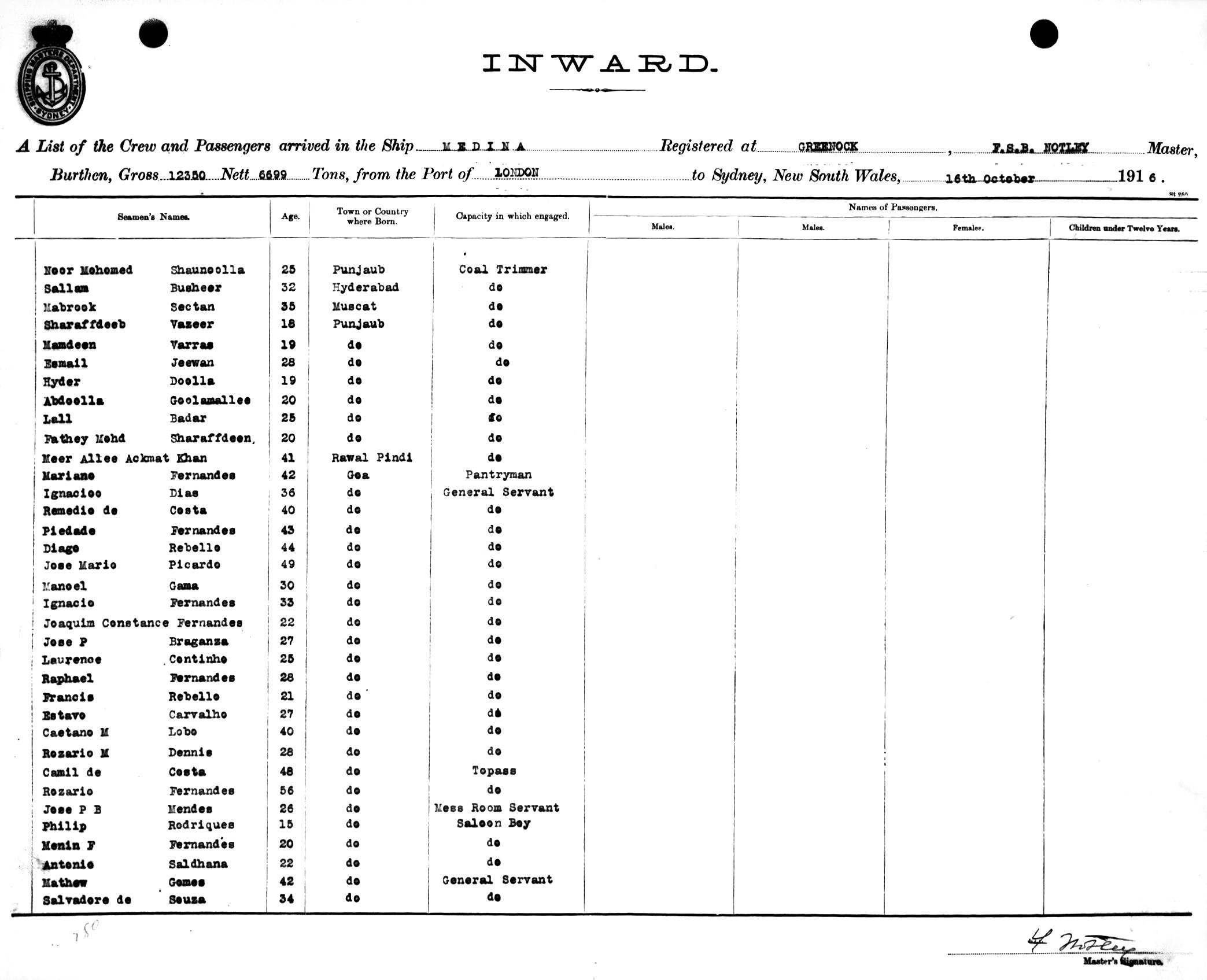 Mariners and ships in Australian Waters | MEDINAOF GREENOCK, F. S. B. NOTLEY, MASTER, BURTHEN 12350/6699 TONS FROM THE PORT OF LONDON via FREMANTLE, ADELAIDE & MELBOURNE TO SYDNEY, NEW SOUTH WALES, 16TH OCTOBER 1916 |