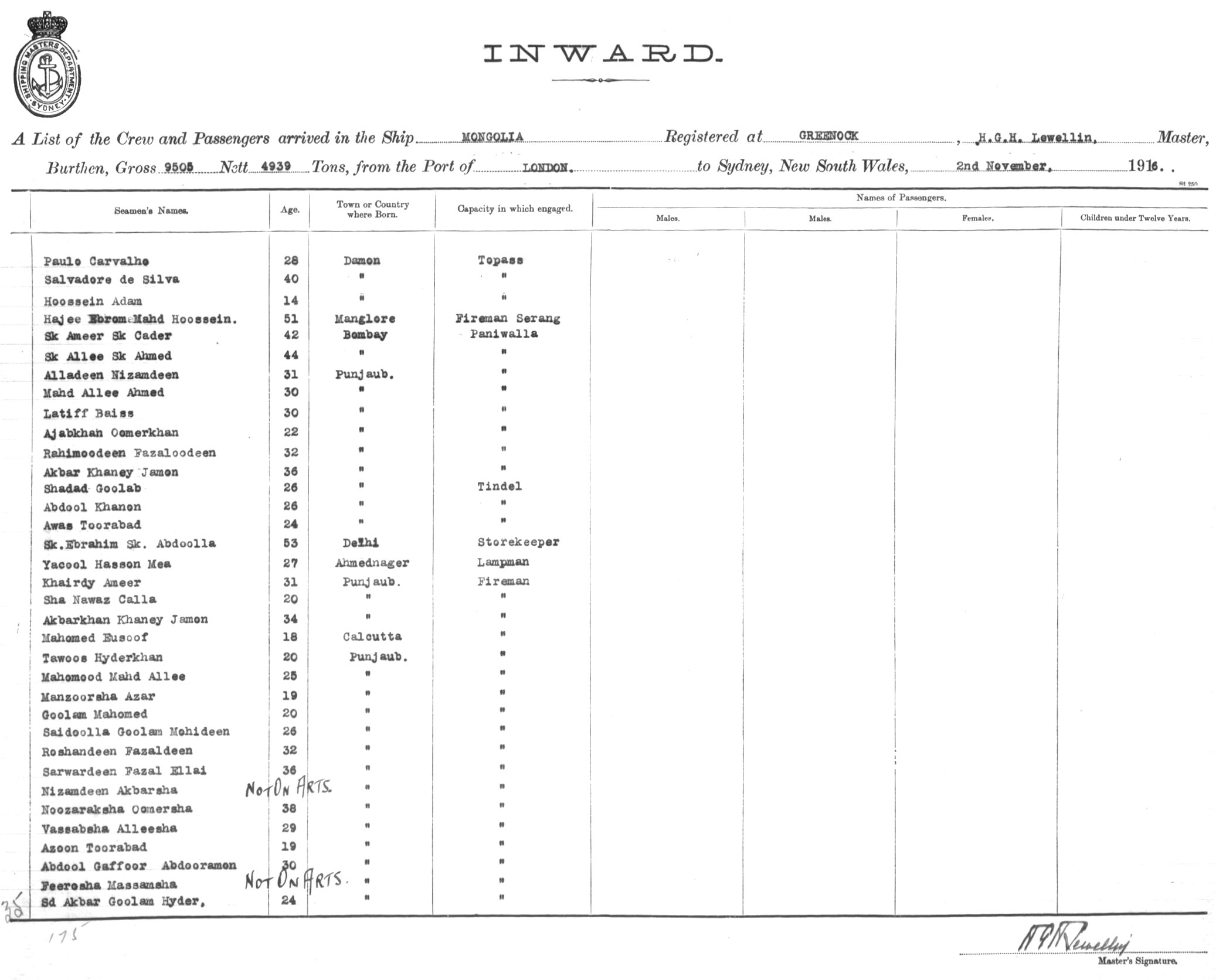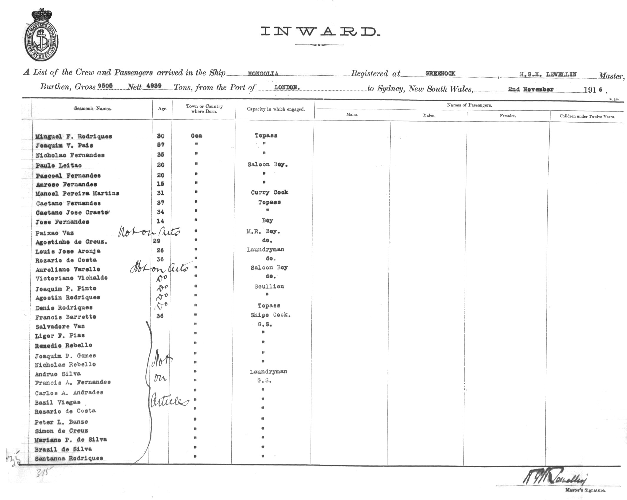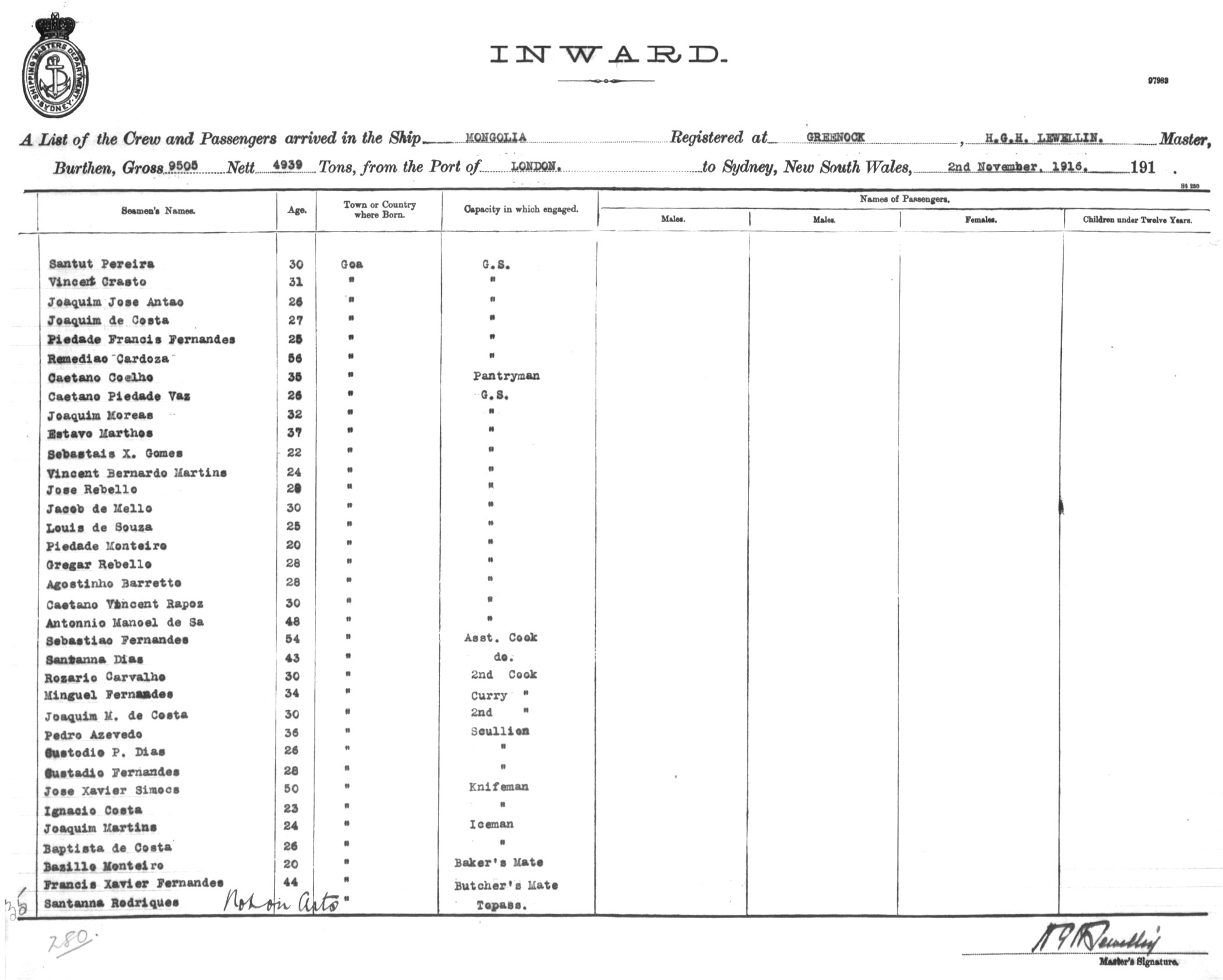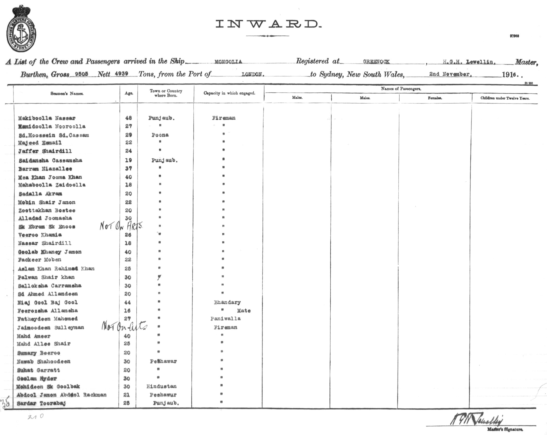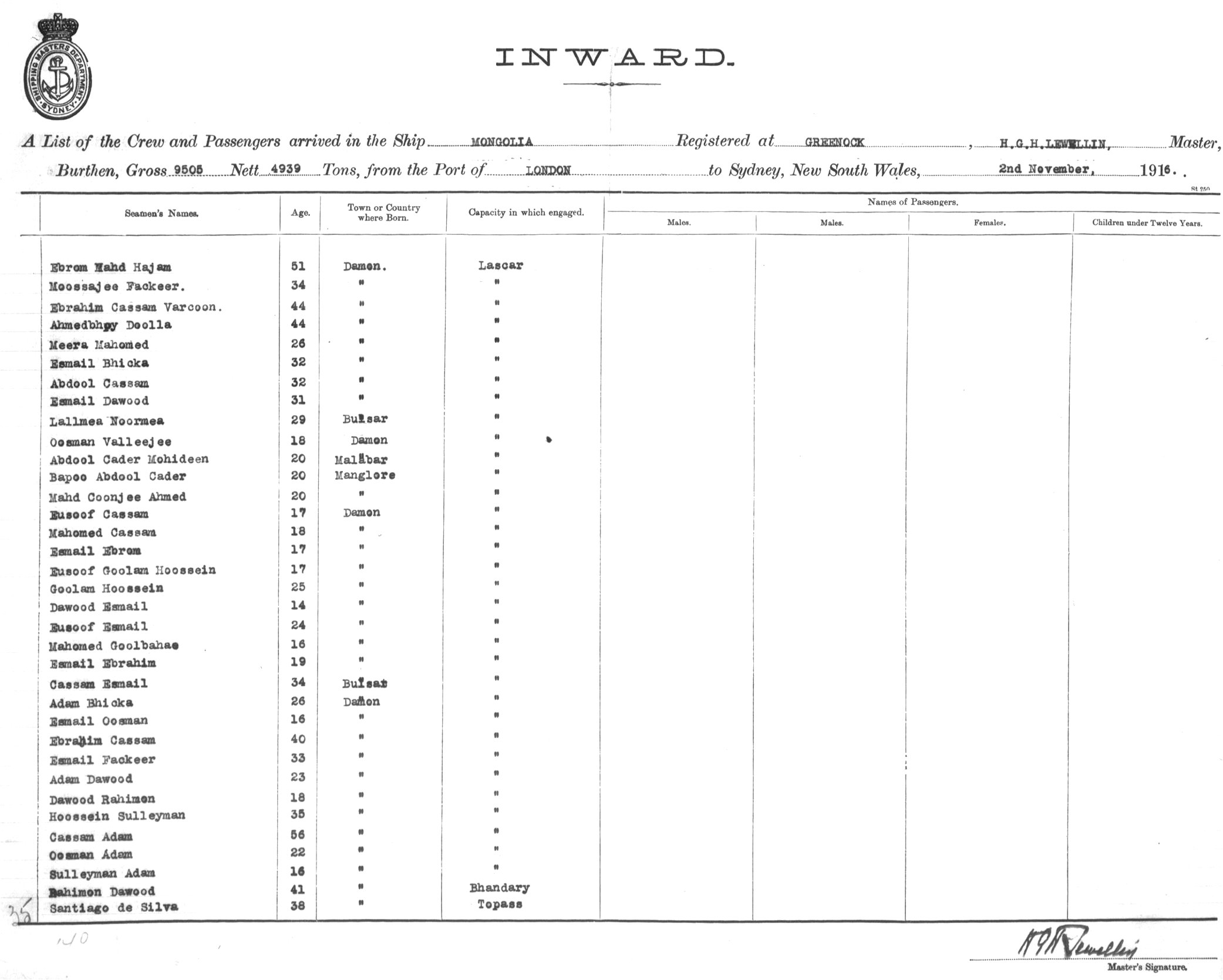 Source: State Records Authority of New South Wales: Shipping Master's Office; Passengers Arriving 1855 - 1922; NRS13278, [X417] reel 2095. Transcribed by Lyn & Maurie.