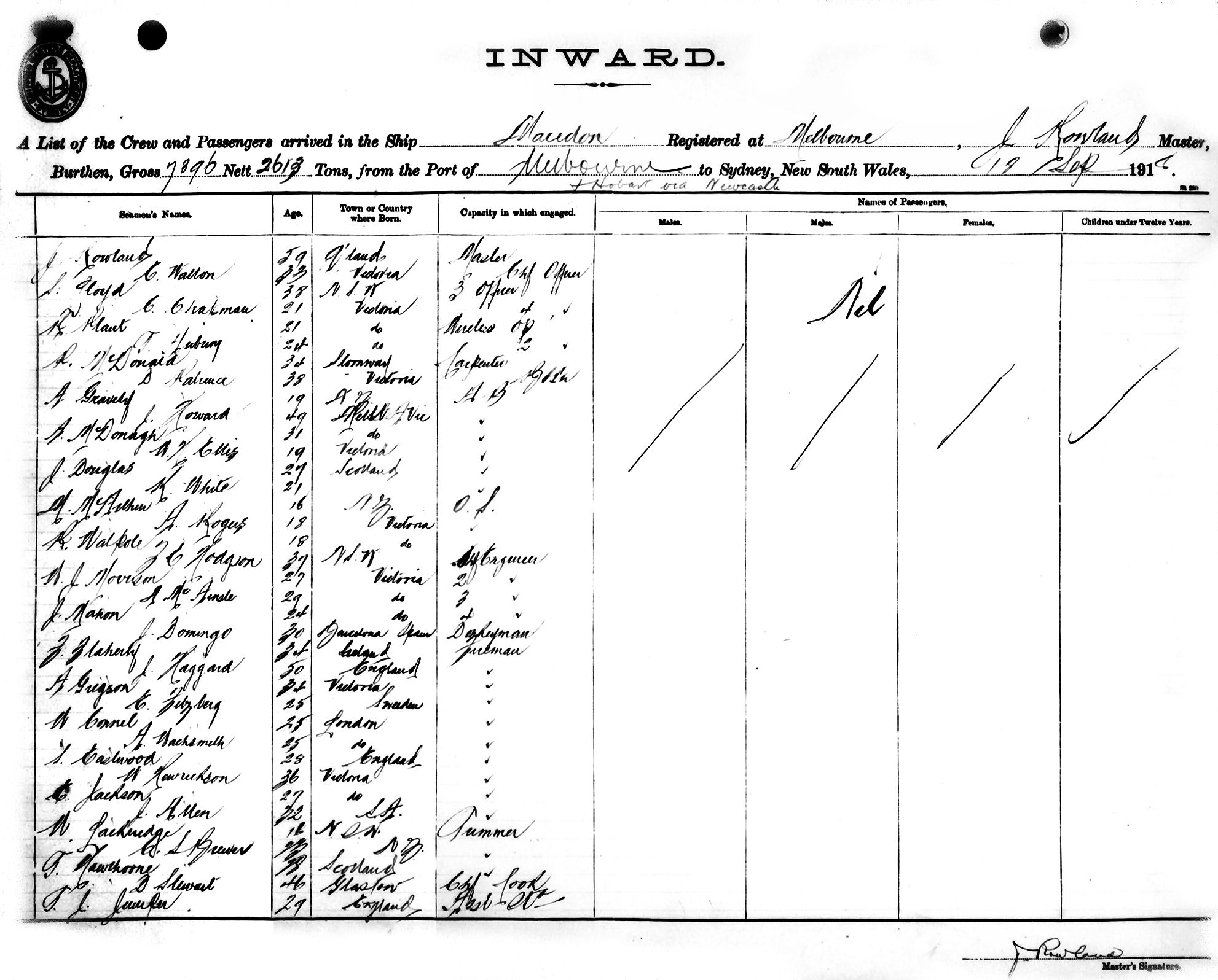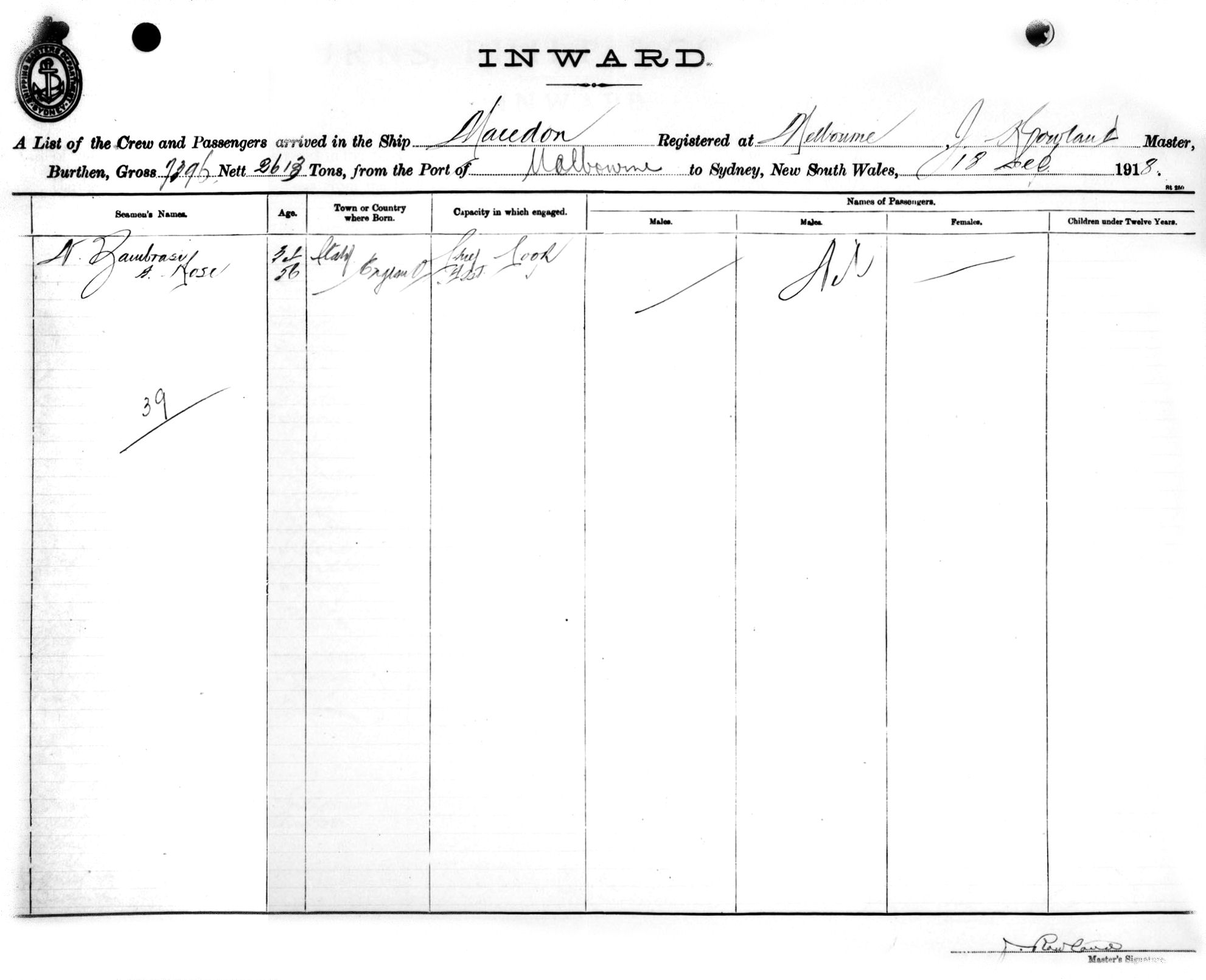 MACEDONOF MELBOURNE, J. ROWLAND, MASTER, BURTHEN 7896/2613 TONS FROM THE PORT OF MELBOURNE & HOBART via NEWCASTLE TO SYDNEY, NEW SOUTH WALES, 18TH SEPTEMBER 1918 |