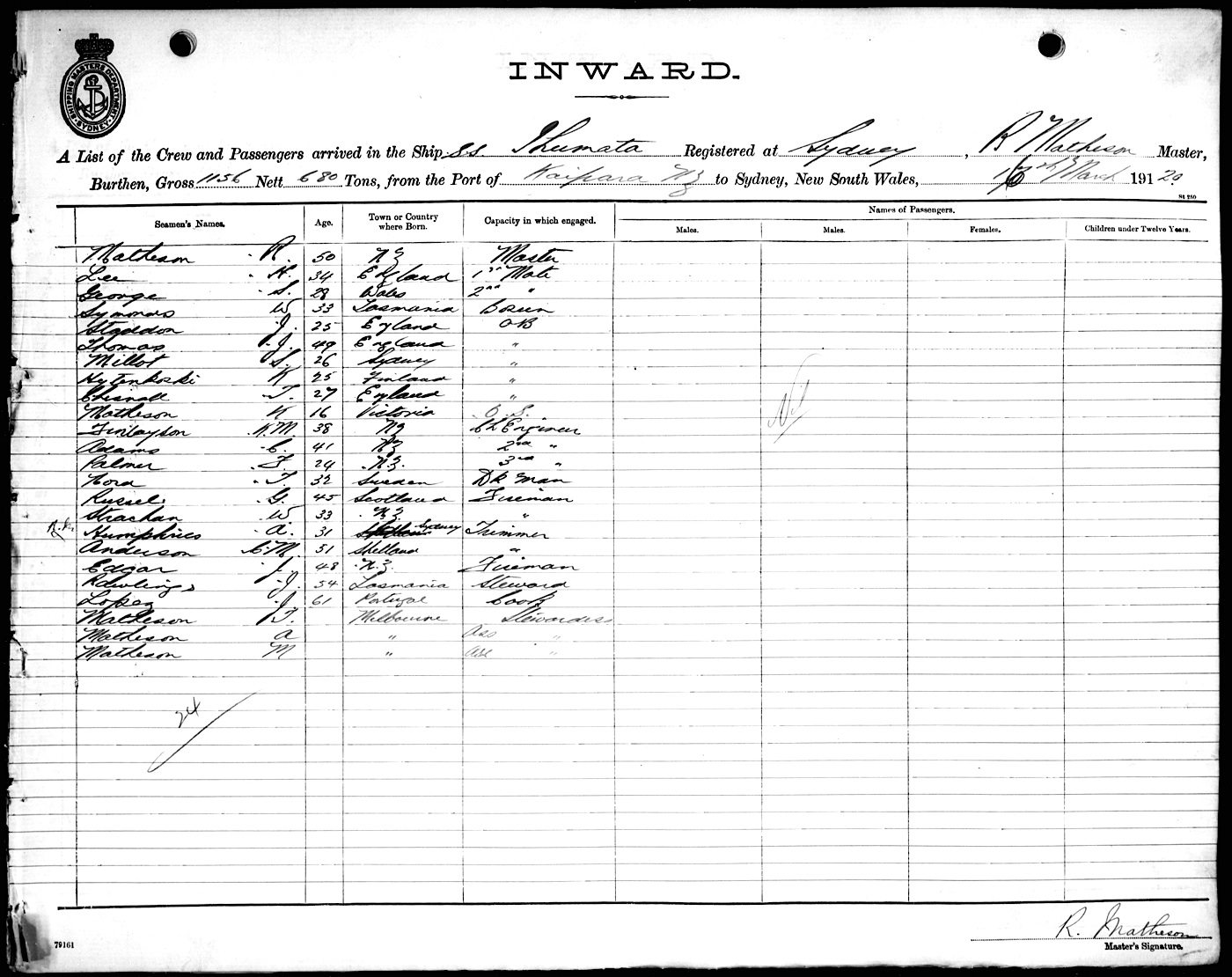 IHUMATAOF SYDNEY, R. MATHESON, MASTER, BURTHEN 1156/680 TONS FROM THE PORT OF KAIPARA, N. Z. TO SYDNEY, NEW SOUTH WALES, 17TH MARCH 1920 |